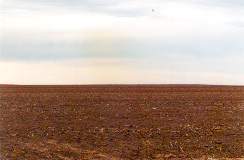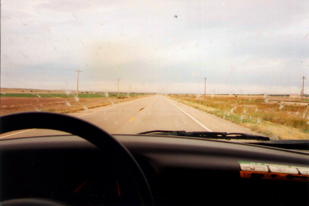 Behind the station is an endless tract of the brownest dirt I’ve ever seen and a lingering odor of cattle manure in the air, but it is slightly different than the cattle crap I’ve smelled before, sweeter and less tangy, slightly nauseating but not nearly as bad as the overpowering cattle odor in Fresno where the smell invades the car even with the windows rolled up tight and stays there dozens of miles later. I take a picture of the perfectly flat brown horizon split by the overcast sky and decide that my Springsteen-esque curiosity about Nebraska has been satisfied. I then jump back in the truck and head due south down the Great Plains Indian Highway towards Kansas.