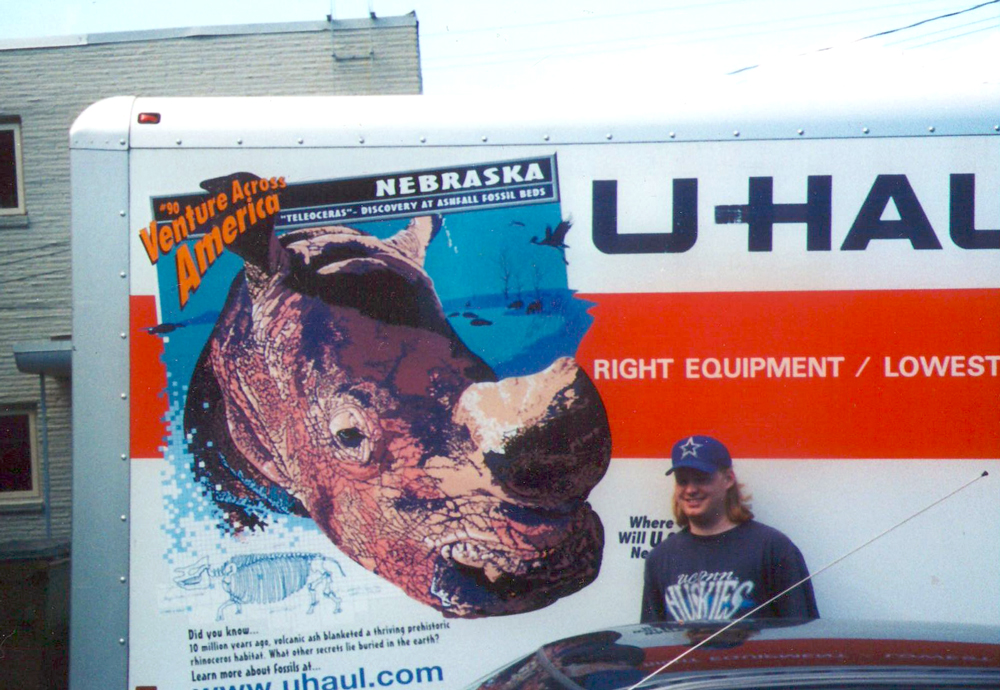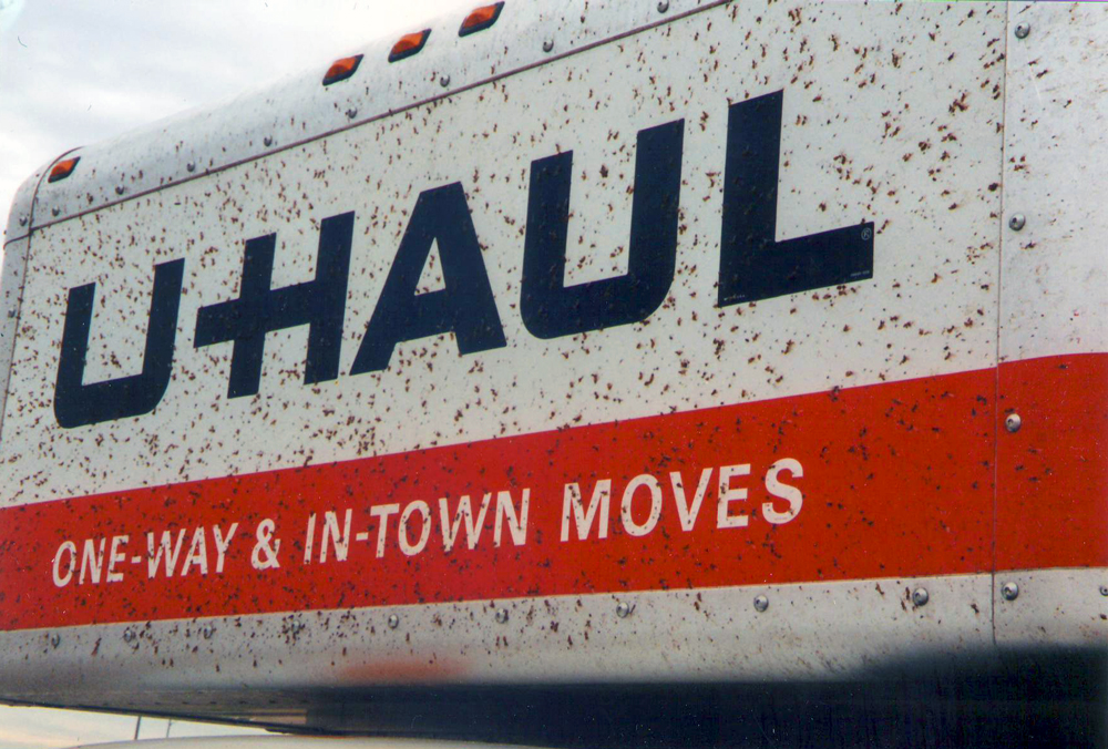 Just outside of Kansas City I see a huge cloud of black smoke up ahead, which at first I think is a building on fire. But it turns out to be a vehicle fire, a U-Haul truck to be exact, in which the cab and part of the “Mom’s Attic” storage area above it is badly burned and a crew of firefighters is still battling the blaze. The sight is quite unsettling, but it is an older model U-Haul than the one I’m driving, and who the hell knows what the guy was transporting that could start a fire that bad.