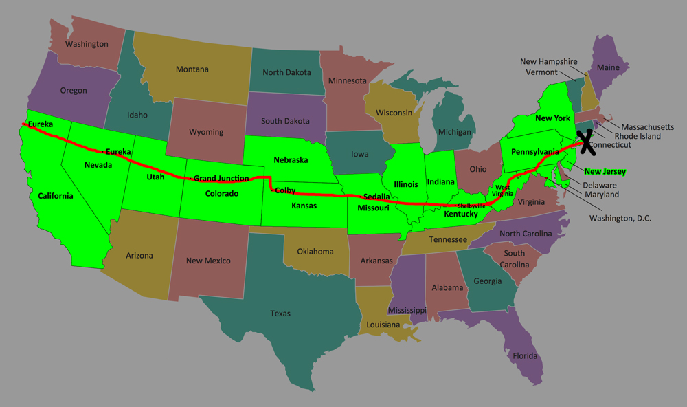 At Hagerstown I jump on I-81 North and take it straight up to Pennsylvania, where the roads immediately become bumpy and the landscape feels more industrial, especially with the large number of tractor-trailers I am suddenly surrounded by. I blast right through my 602 mile record, but I still have another 170 miles to go just to get to New York City and then another 30 or so to get out to Massapequa on Long Island. Though I am really tired, I am too close to stop for the night and have no choice but to just keep on going.