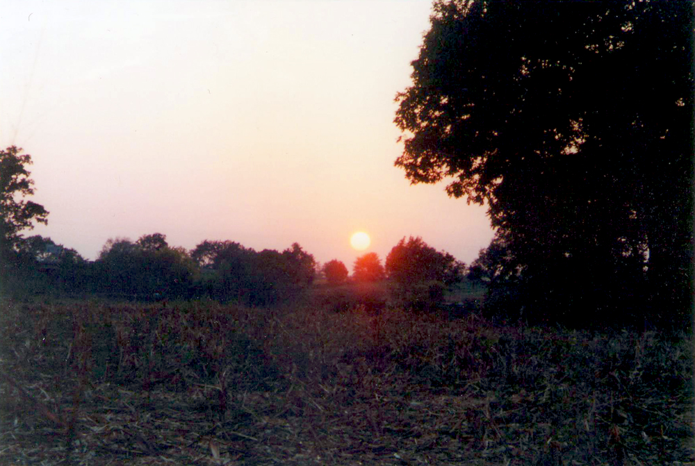 Across the Ohio River, Louisville looks like a nice little city in the bright Sunday evening twilight. There is hardly any traffic and I quickly pass through. I am exhausted and was hoping to be a little further along by now. I still have a long way to go, yet I am clinging to the hope that tonight will be my last night on the road. Right now I am hoping to make it at least beyond Lexington, but by the time I hit Shelbyville the sun is nearly down. I pull over to a gas station and watch the small orange globe set in the western haze before buying a sandwich at the mini-mart and setting out to find a place to spend the night.
