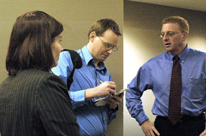 Source building doesn’t seem to matter much in the North American animal pharmaceutical world. There is almost never any huge breaking news. Beyond a catastrophic outbreak of mad cow disease (bovine spongiform encephalopathy—ha ha, I can spell that without looking now!) or foot-and-mouth disease, there doesn’t seem to be much that can happen. This is straight business reporting. Almost everything is done through press releases with ready-made quotes. Occasionally I will find an existing article and track down the source from that article so that I can write my own version of the story with a different angle, but, beyond that, there isn’t much happening on a day-to-day basis. The animal pharmaceutical industry actually seems to be a much bigger deal in Europe, but it almost seemed invisible in the States until the Kansas City Animal Health Corridor people found me.